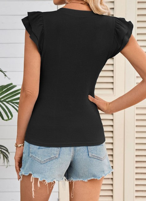 Black Ribbed Ruffle Top