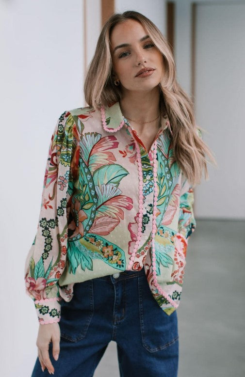 Sold outDobby lace trim shirt