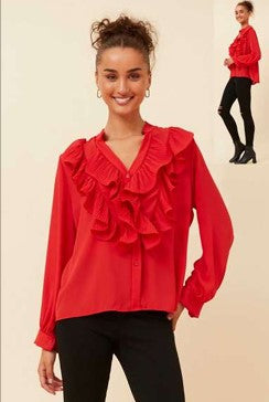 Ruffle detail Red Blouse