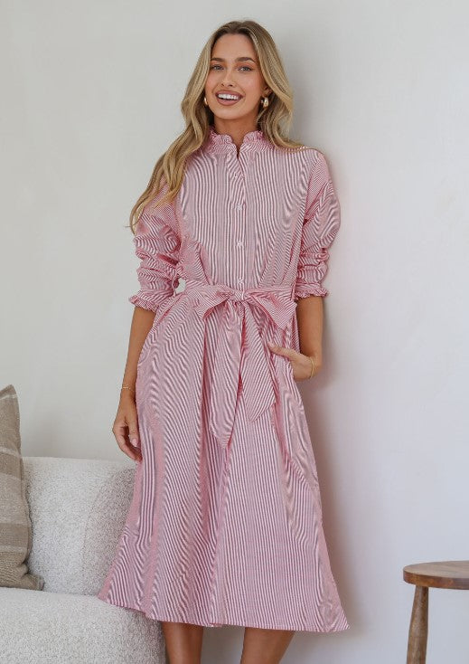 Striped Shirt dress Red