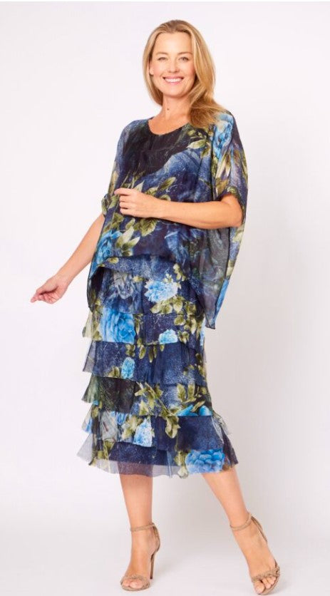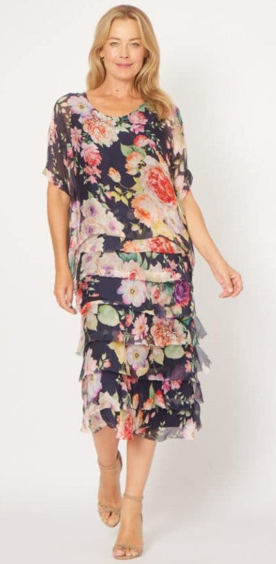 Silk layered dress navy floral