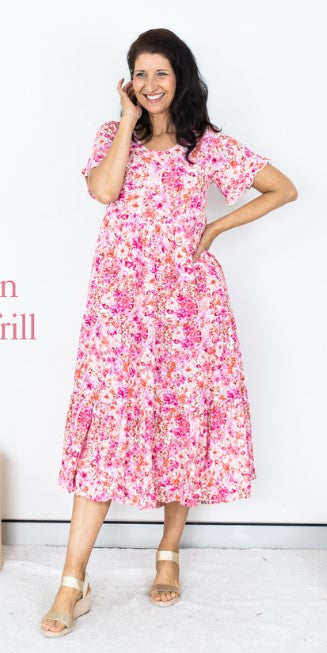 Watermelon relaxed tier dress