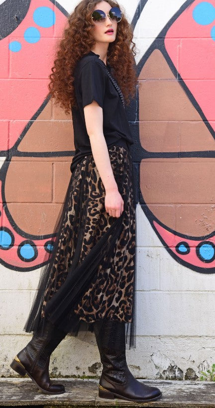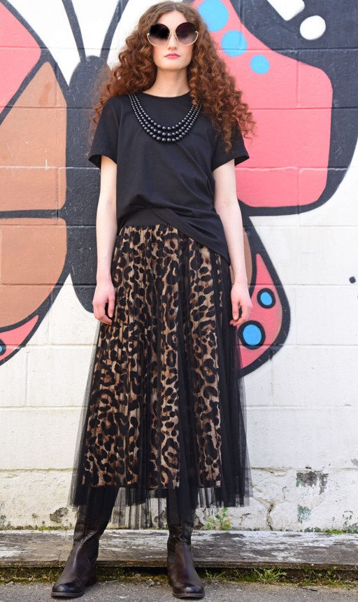 Another staple addition to any wardrobe, the 'Cougar Central' skirt is a versatile skirt that is sure to pull all outfits together. Designed in the 'Outward bound' fabric, this leopard skirt features an elasticated waist, and mesh overlay, making it easy to dress feminine chic, or edgy elevation, whichever you're in the mood for.
