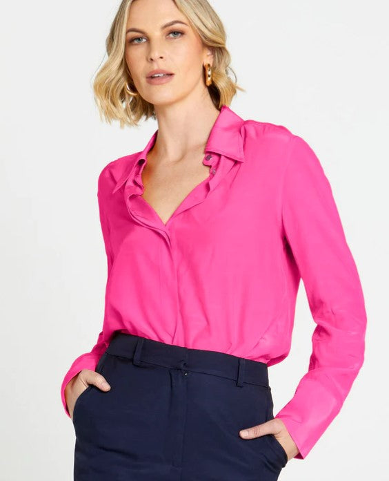 The Unguarded Moment shirt is a chic and elegant shirt. In a lightweight and soft fabric with nods to classic shirt tailoring in a relaxed Summer fit. With both casual , formal and business styling options this piece will truly become a fast wardrobe staple.